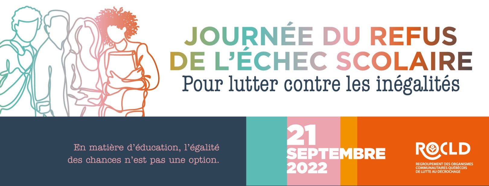 En cette 4e édition de la Journée du refus de l’échec scolaire, je tiens à mettre en lumière, conjointement avec les 60 organismes membres du Regroupement des organismes de lutte au décrochage (ROCLD), les causes sociales et structurelles liées au décrochage scolaire. Il faut prendre le temps de les comprendre et, surtout, de trouver des pistes de solutions.